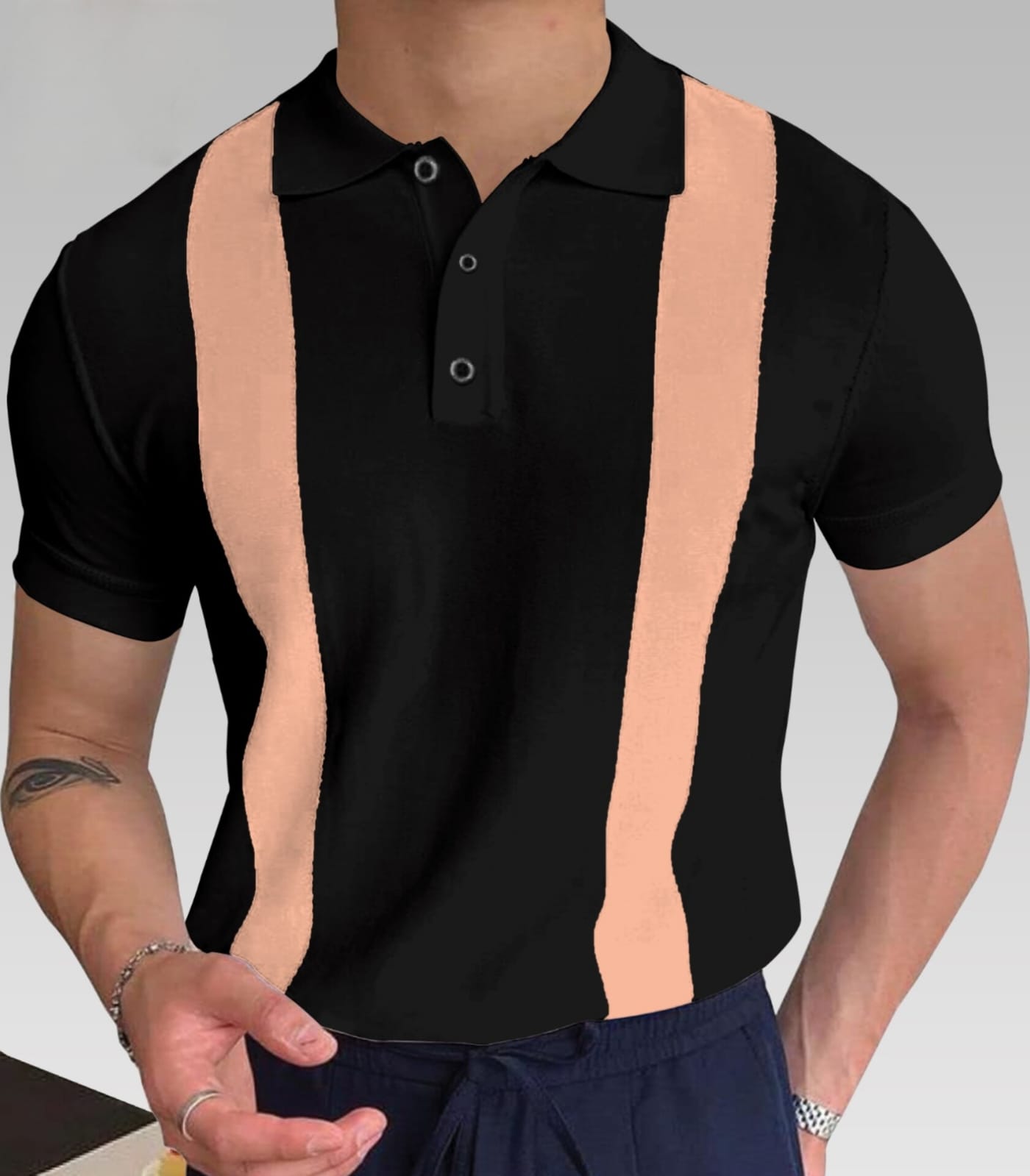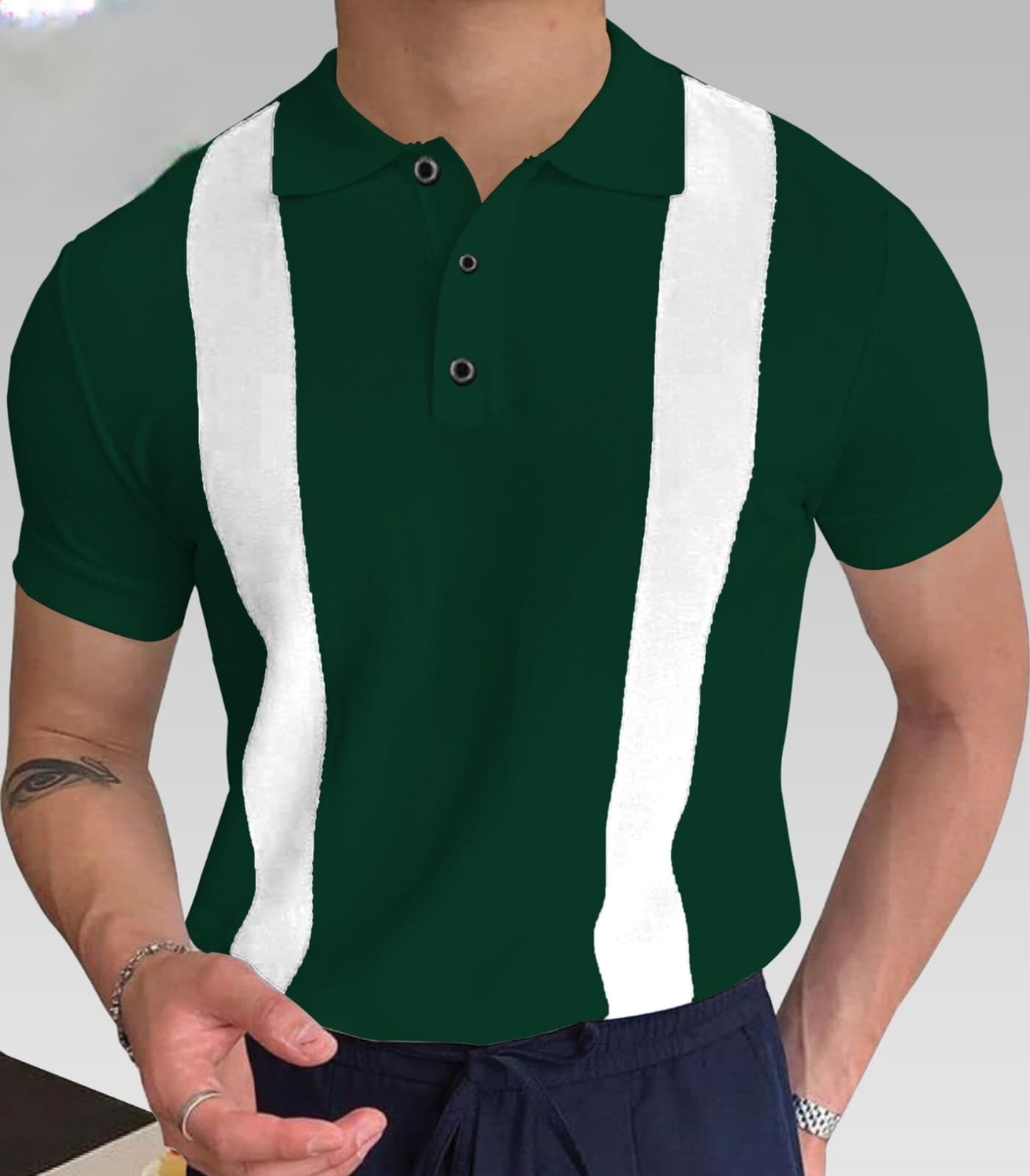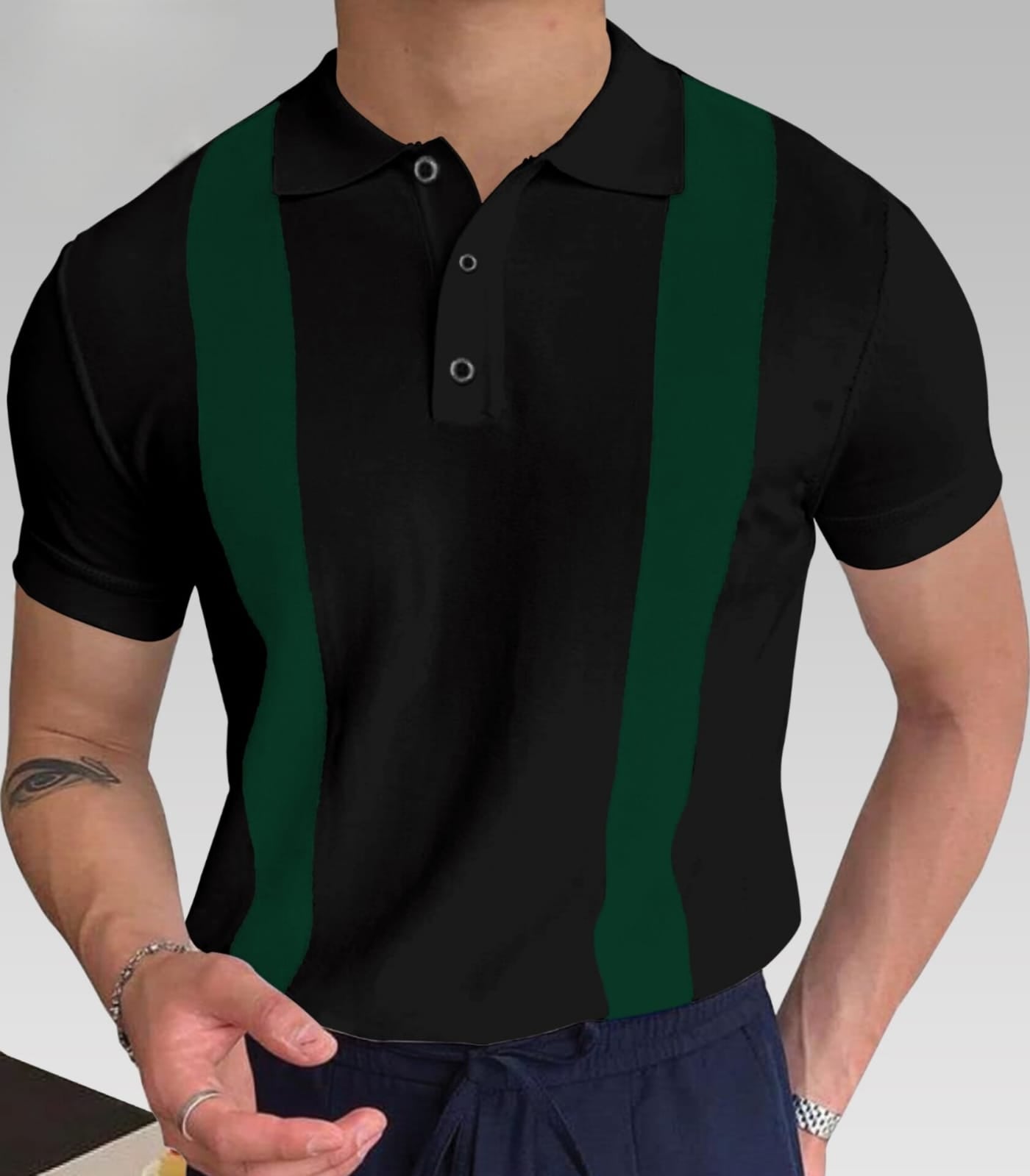 Upgrade your casual style with this Striped Polo T-Shirt. Made from premium breathable fabric, this polo features a sleek black base with bold vertical green stripes for a modern, sporty look. The three-button placket and short sleeves add a touch of class, making it perfect for both casual outings and semi-formal gatherings.